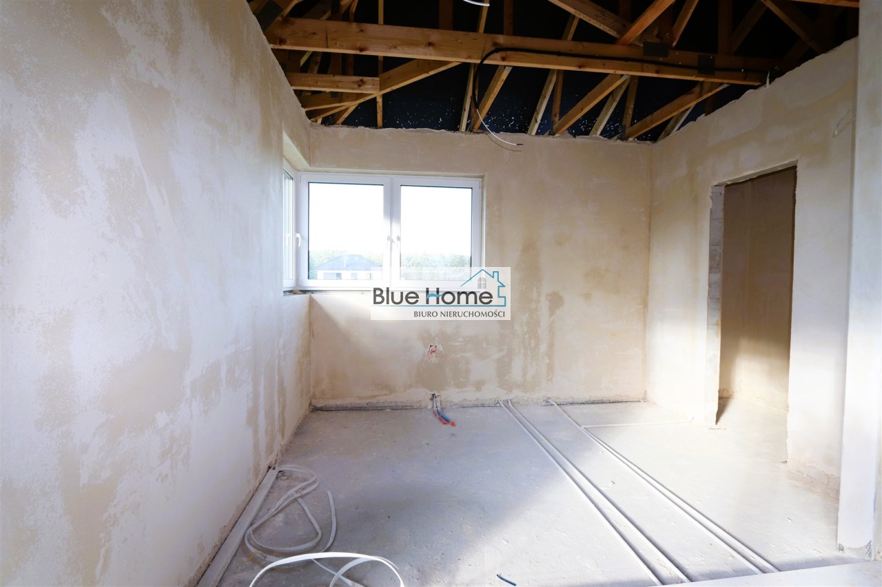 Dom oferowany jest w stanie deweloperskim podwyższonym, co oznacza, że w cenie zawarte są m.in.: wykonane tynki wewnętrzne, zamontowana pompa ciepła i piec, założony trawnik, brama wjazdowa, stolarka okienna PCV oraz dach pokryty dachówką cementową. Dzięki temu nieruchomość jest gotowa do rozpoczęcia prac wykończeniowych i szybkiego zamieszkania.