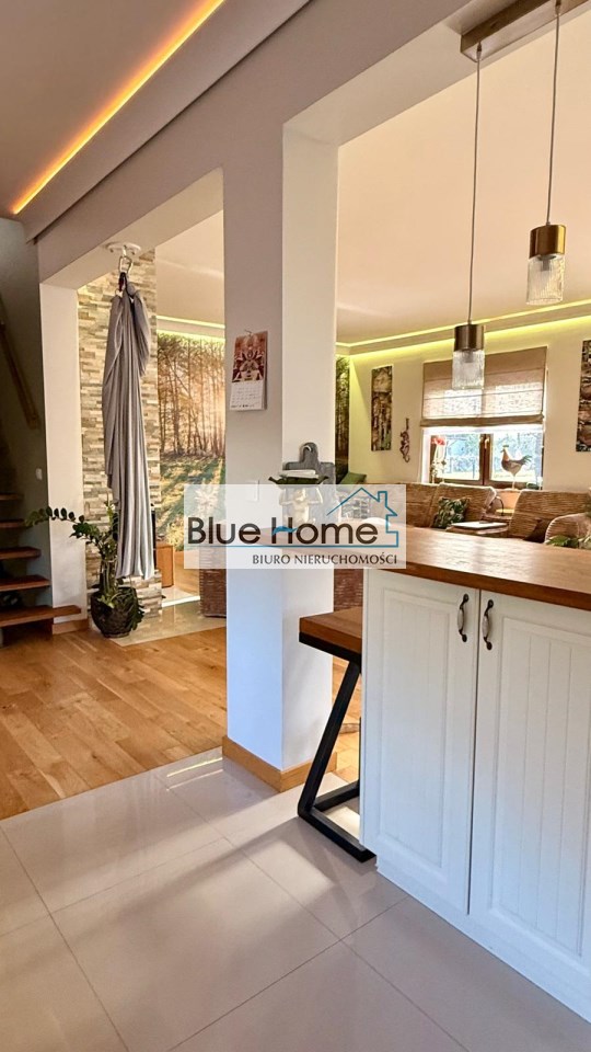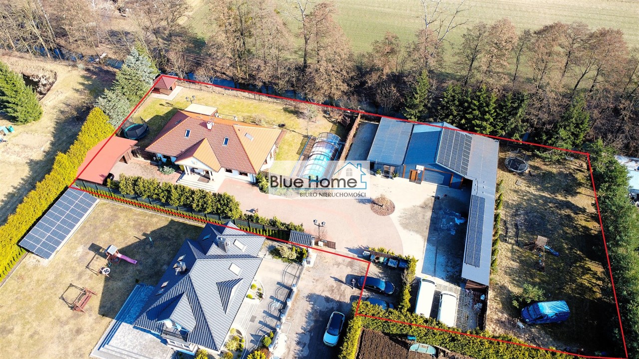 KRÓTKI OPIS: Biuro Nieruchomości BLUE-HOME ma przyjemność zaprezentować Państwu wyjątkową nieruchomość z 2020 roku, która łączy w sobie luksus, funkcjonalność oraz pełną niezależność energetyczną. Ten wolnostojący dom parterowy z poddaszem użytkowym położony jest na przestronnej, podwójnej działce, oferując prywatność oraz bezpośredni kontakt z naturą dzięki sąsiedztwu strugi i wysokich drzew.