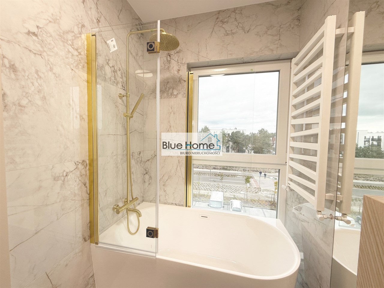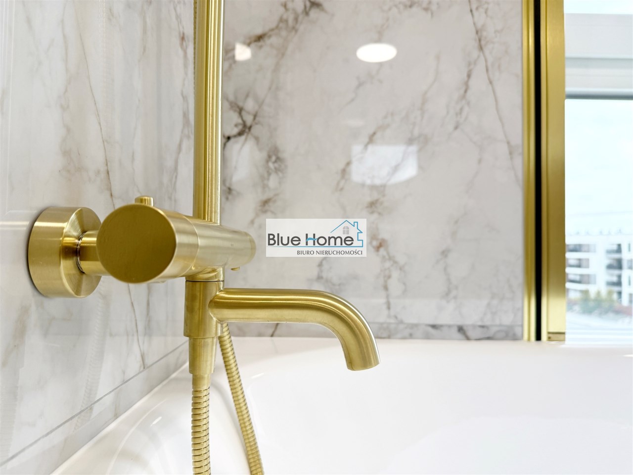 – łazienka projektowana i kompletowana w firmie Bokaro, z armaturą Omnires (szczotkowane złoto), glazurą Tubądzin i Azuvi listelli Corda