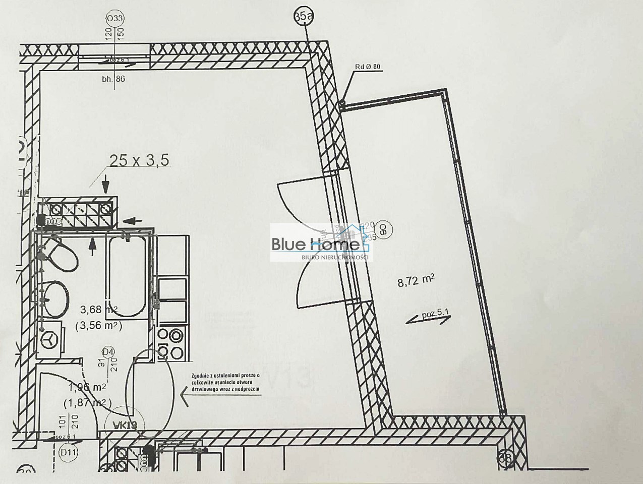 Na wcześniejszym etapie budowy Kupujący wprowadził zmiany umożliwiające wydzielenie 2 pokoju.