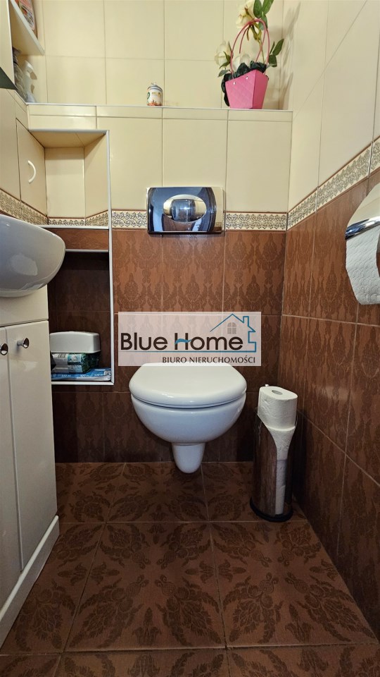 W łazience wanna i pralka, osobna toaleta z dodatkową umywalką