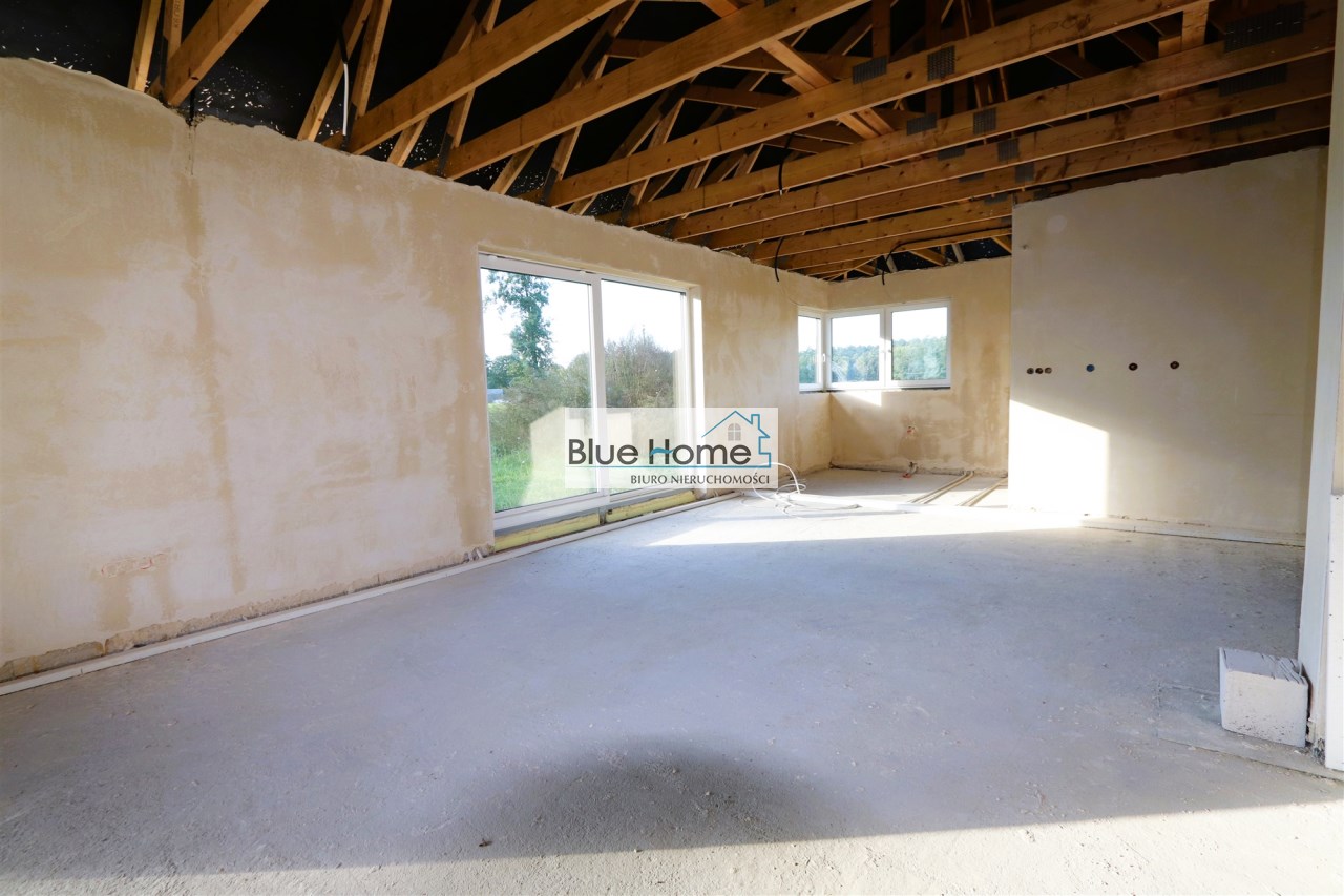 Dom oferowany jest w stanie deweloperskim podwyższonym, co oznacza, że w cenie zawarte są m.in.: wykonane tynki wewnętrzne, zamontowana pompa ciepła i piec, założony trawnik, brama wjazdowa, stolarka okienna PCV oraz dach pokryty dachówką cementową. Dzięki temu nieruchomość jest gotowa do rozpoczęcia prac wykończeniowych i szybkiego zamieszkania.