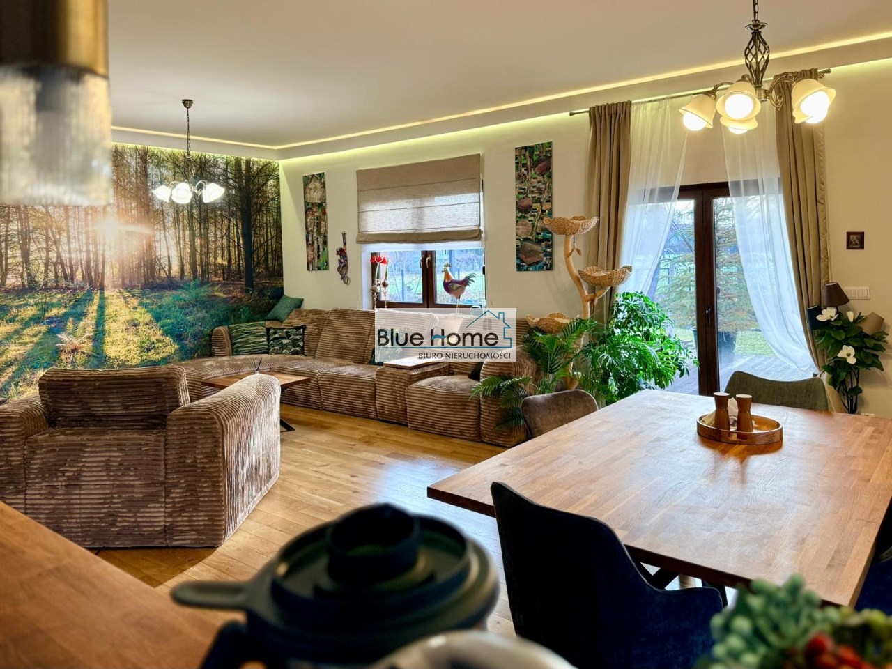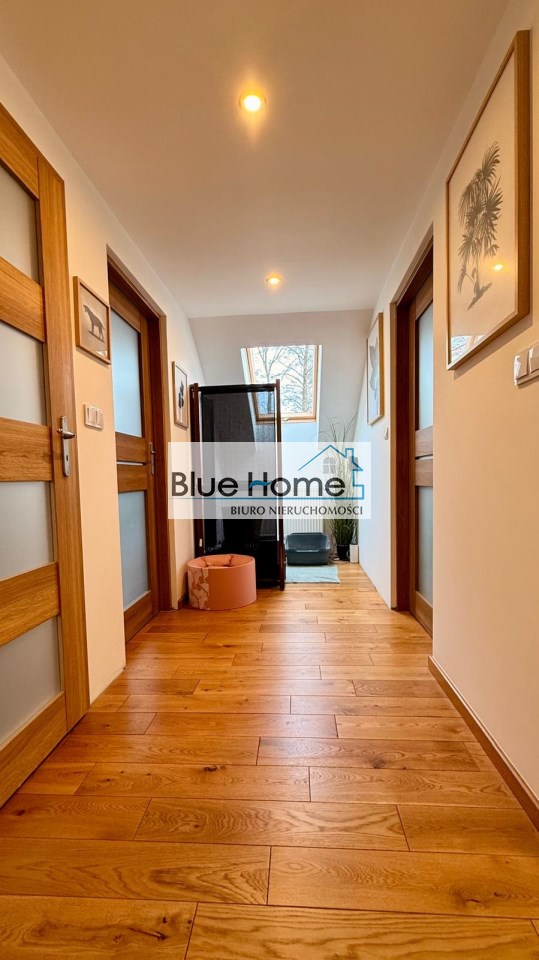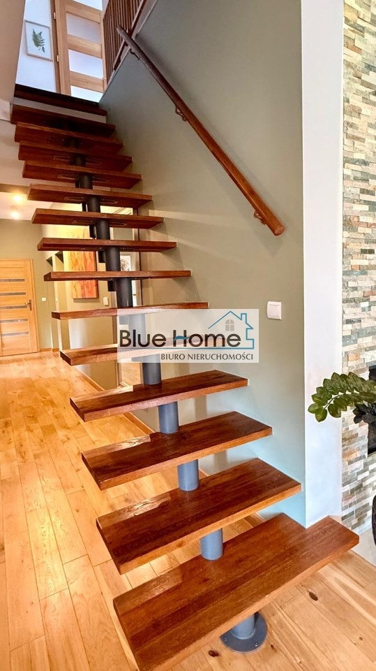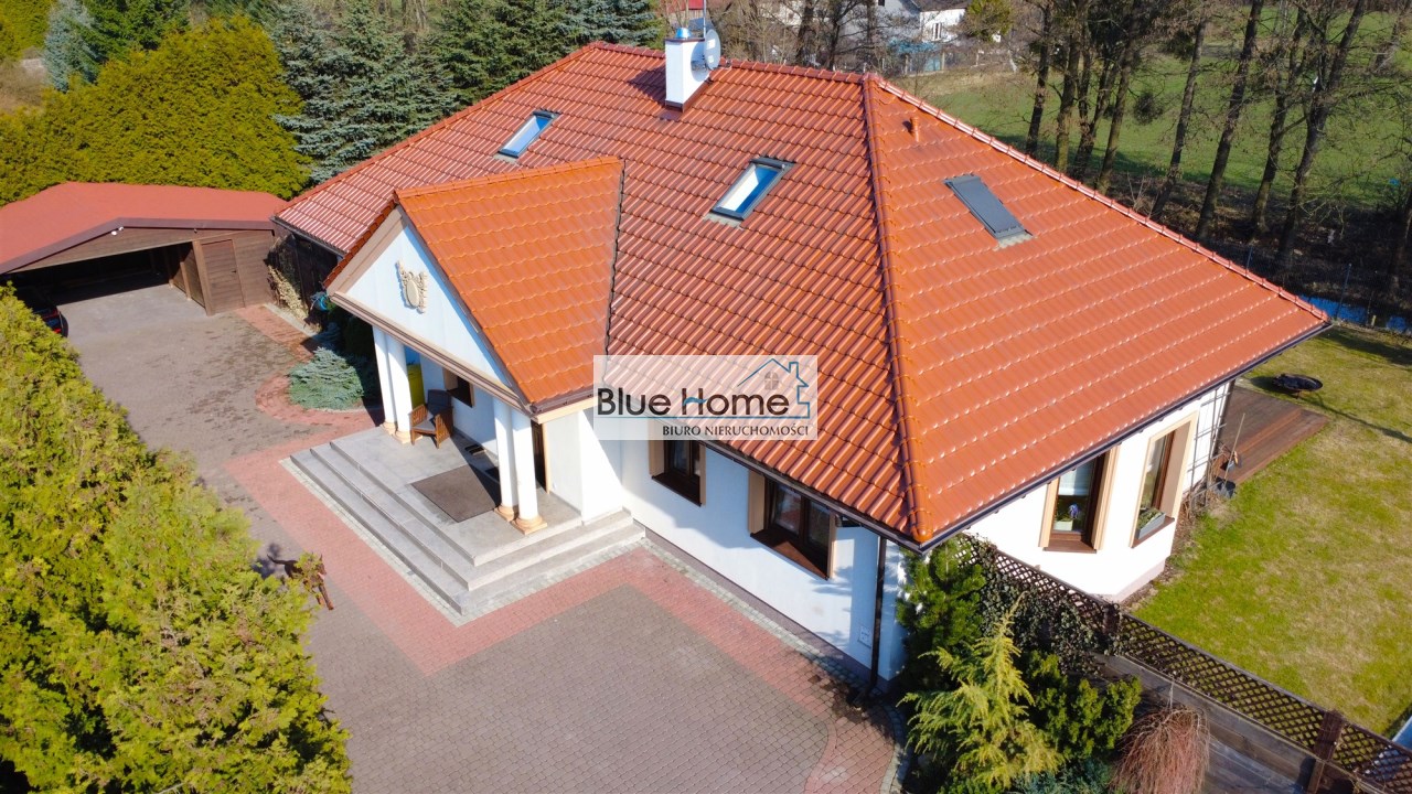 KRÓTKI OPIS: Biuro Nieruchomości BLUE-HOME ma przyjemność zaprezentować Państwu wyjątkową nieruchomość z 2020 roku, która łączy w sobie luksus, funkcjonalność oraz pełną niezależność energetyczną. Ten wolnostojący dom parterowy z poddaszem użytkowym położony jest na przestronnej, podwójnej działce, oferując prywatność oraz bezpośredni kontakt z naturą dzięki sąsiedztwu strugi i wysokich drzew.