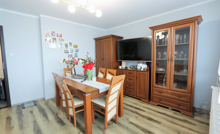 Pokoje: ściany – gładzie i tapeta, podłogi – panele.