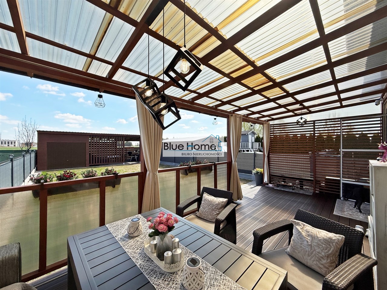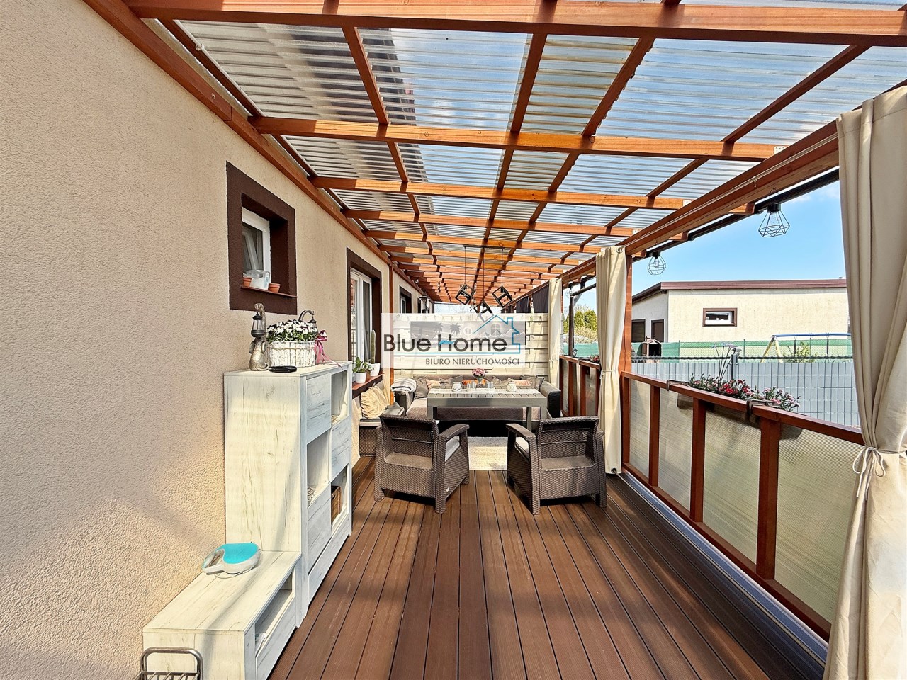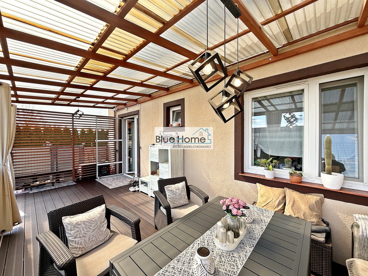 - taras: Bezpośrednie wyjście z mieszkania na zadaszony zagospodarowany taras