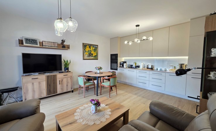 Mieszkanie usytuowane jest na II piętrze w nowoczesnym, dwupiętrowym budynku z windą, oddanym do użytku w 2021 roku. Osiedle jest zamknięte i monitorowane – gwarancja prywatności i spokoju